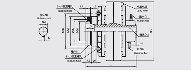 FL-K/Y型( 法蘭輸入、空心軸輸出、止口支撐、水冷卻)磁粉離合器 眾所周知磁粉離合器是由傳動(dòng)單元和從動(dòng)單元合并而成。而我公司生產(chǎn)的FL-K/Y型磁粉離合器則是在兩組單元之間的空間,填有粒狀的磁粉。 FL-K/Y型磁粉離合器常用于印刷機(jī)械、紙工機(jī)械、制袋機(jī)械、造紙機(jī)械、電線電纜機(jī)械、卷線機(jī)械、線材機(jī)械、捆包包袋機(jī)械、紡織機(jī)械、織維機(jī)械、木工機(jī)械、試驗(yàn)設(shè)備、模擬負(fù)荷用、各種機(jī)械的精密性張力控制用、一般工業(yè)用裝置、其他一般產(chǎn)業(yè)機(jī)械等等范圍,擁有非常廣泛的作用。 當(dāng)FL-K/Y型磁粉離合器的磁性線圈不導(dǎo)電時(shí),轉(zhuǎn)矩不會(huì)從傳動(dòng)軸傳于從動(dòng)軸,但如將線圈電磁通電,就由于磁力的作用而吸引磁粉產(chǎn)生硬化現(xiàn)象,在連繼滑動(dòng)之間會(huì)把轉(zhuǎn)矩傳達(dá)。