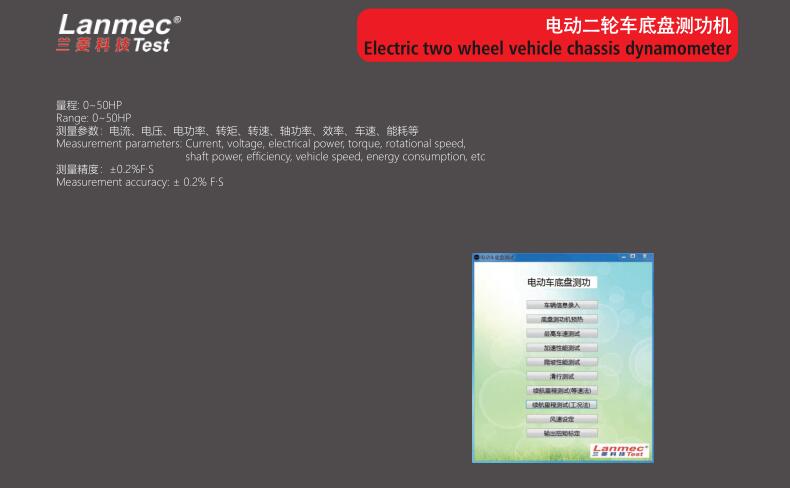 測量參數(shù):電流、電壓、電功率、轉(zhuǎn)矩、轉(zhuǎn)速、軸功率、效率、車速、能耗等