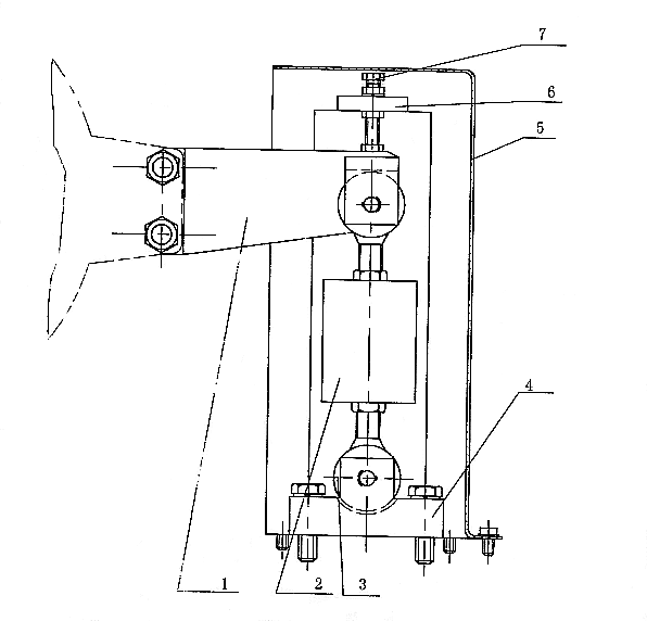 圖四(a)YP20、YP60、YP120、YP250、YP380、YP520、YP660 測(cè)力機(jī)構(gòu)部件示意圖 1、制動(dòng)臂 2、拉壓力傳感器 3、活節(jié)螺栓 4、支承座 5、保護(hù)罩 6、活動(dòng)板 7、螺栓